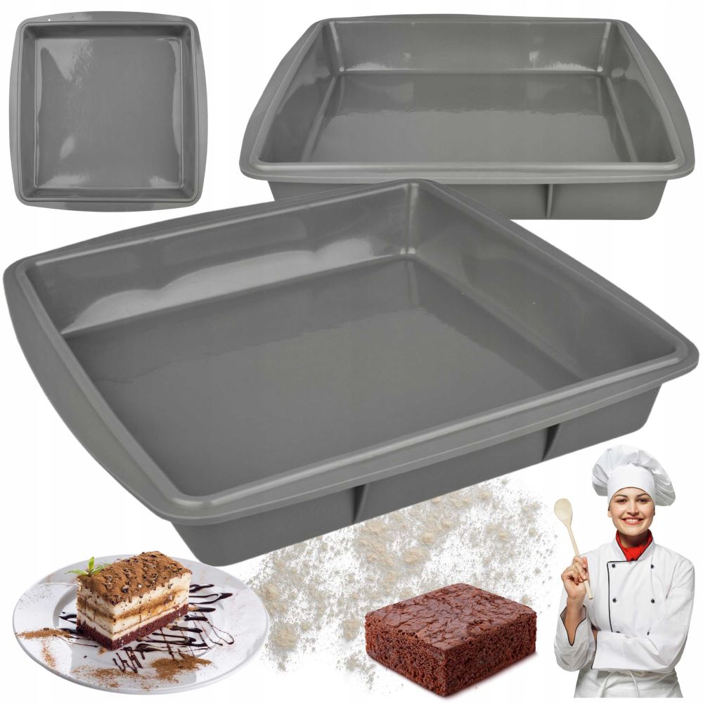 Készítsen tökéletes brownie-kat, süteményeket vagy akár sülteket ebben a prémium minőségű, szögletes szilikon sütőformában. A 27,5 x 26,5 cm-es méret ideális közepes adagok elkészítéséhez, a 4 cm-es peremmagasság pedig stabil tartást biztosít a tésztáknak és a szaftosabb ételeknek egyaránt. A sötétszürke, modern kivitel nemcsak esztétikus, hanem professzionális hőelosztást is garantál a sütés során.