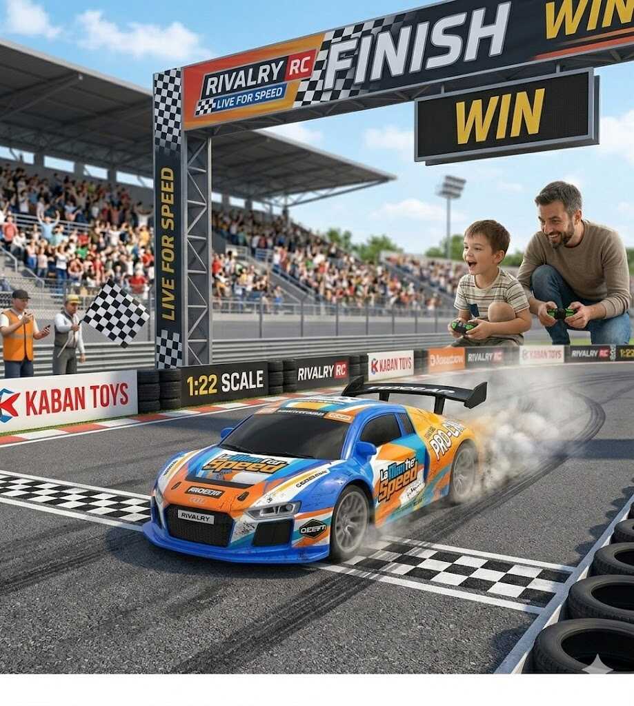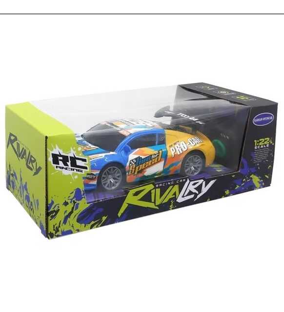 Ez a látványos, kék és narancssárga mintázattal díszített távirányítós versenyautó a sebesség szerelmeseinek készült. Az 1:22-es méretarányú modell hűen tükrözi a profi sportautók világát, aerodinamikus formájával és nagyméretű hátsó szárnyával pedig minden kanyarban stabil marad.