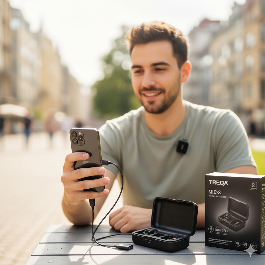 Felejtse el a kusza kábeleket és a bonyolult beállításokat. A rendszer Plug & Play alapon működik: csak csatlakoztassa a vevőegységet a telefonjához, és a párosítás automatikusan megtörténik. A csomagban található Lightning és USB-C adapterek révén a szett egyaránt kompatibilis a legújabb iPhone és Android készülékekkel, így nem kell aggódnia az eszközváltás miatt.