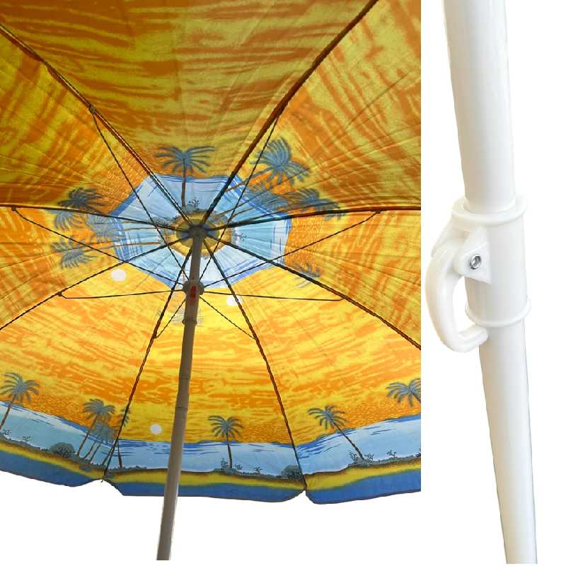- Stabil, leszúrható rögzítővég: Az ernyő alja spicces kialakítású, ami megkönnyíti a stabil leszúrást homokban, földben vagy fűben. A robusztus középső rúd biztosítja a stabilitást még enyhébb szélben is, így nem kell aggódnod, hogy felborul.
