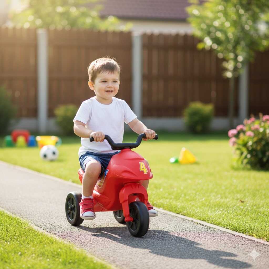 - Szabadtéri játék: A gyerekek motorozhatnak a parkban, a játszótéren vagy a kertben.