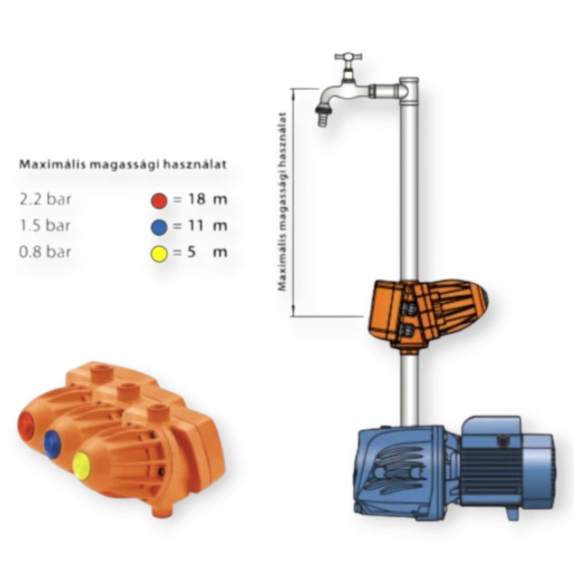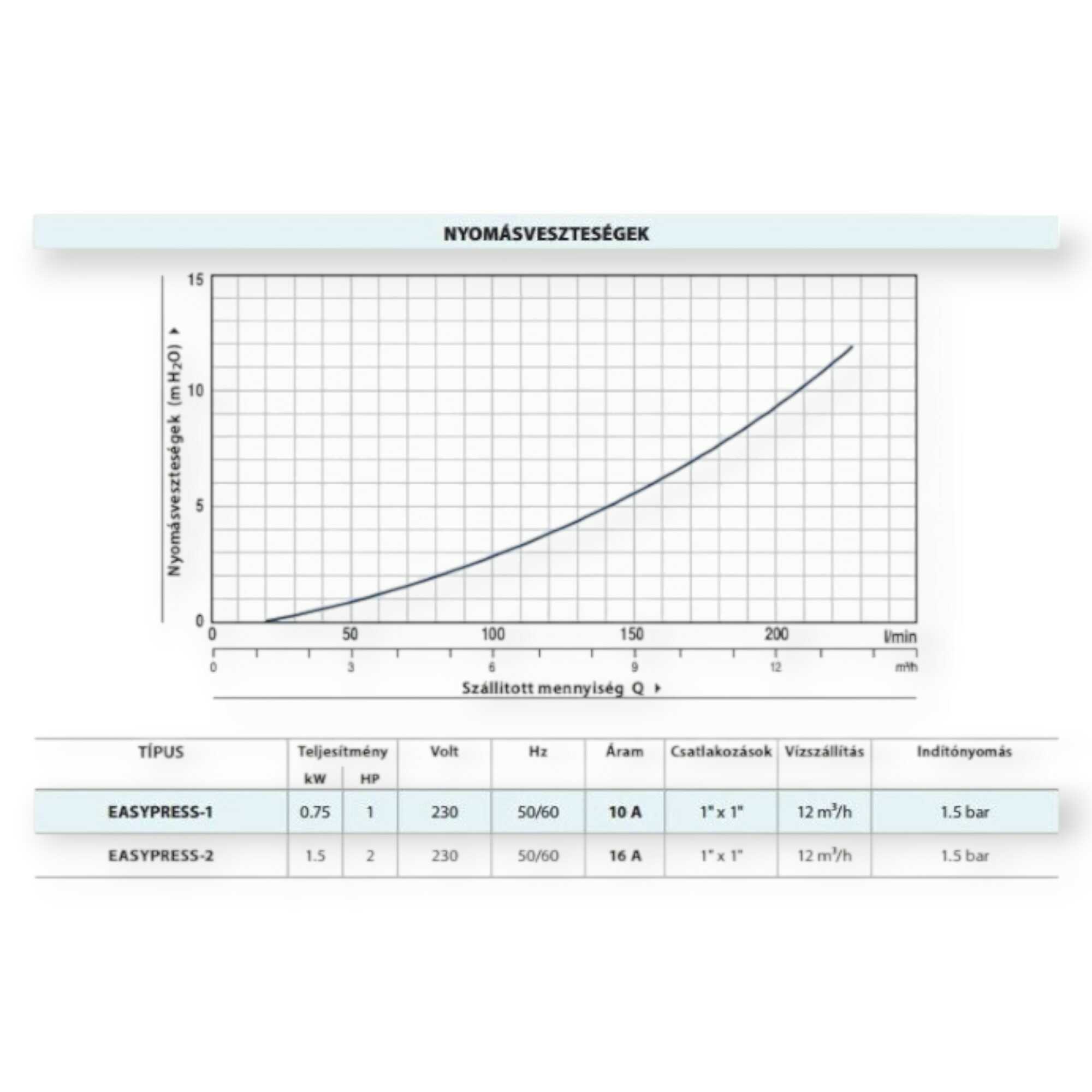* Maximális szállítás: 12 m³/óra.