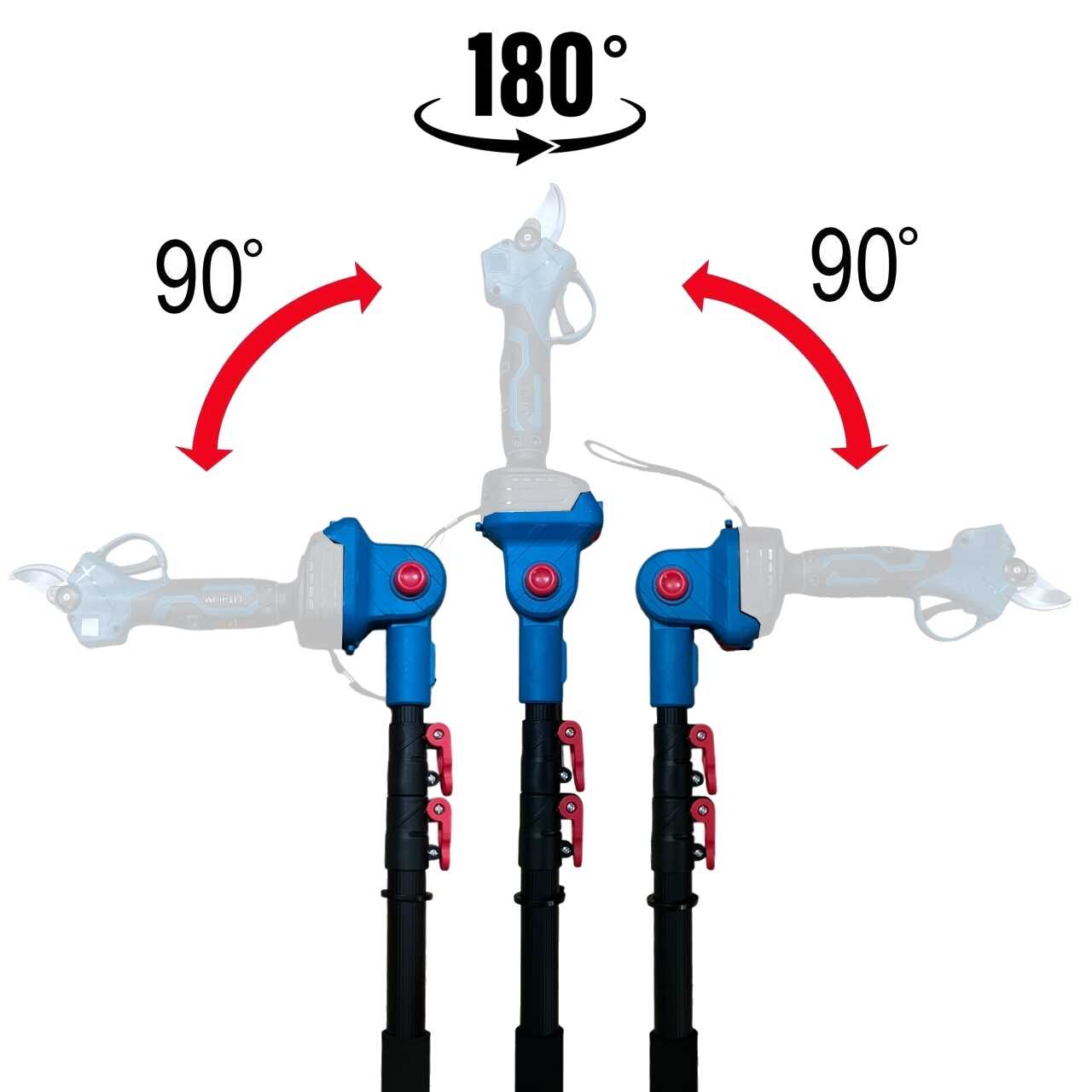 * Extra hatótávolság: 110 cm és 200 cm között fokozatmentesen állítható hosszúság a magas ágak eléréséhez.