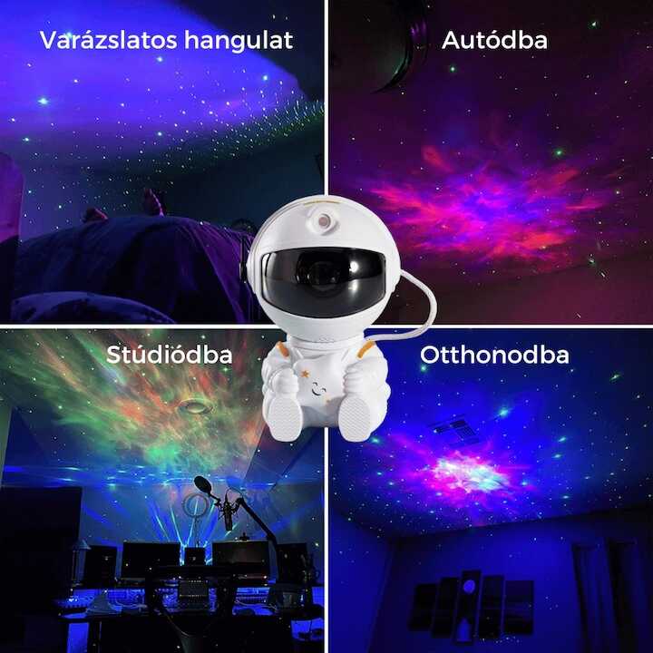 Űrhajós Csillagfény Távirányítóval Projector Galaxy Astronaut LED lámpák, 360 fokban állítható mágneses fej, otthonra és autóba.