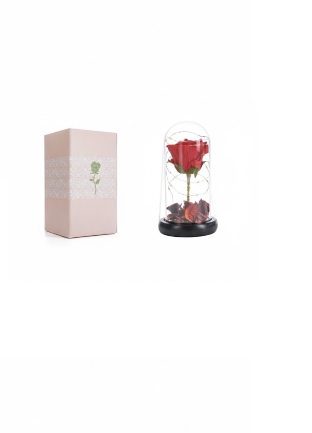 Halhatatlan Örök Rózsa üvegkupolában, LED világítással és díszdobozzal