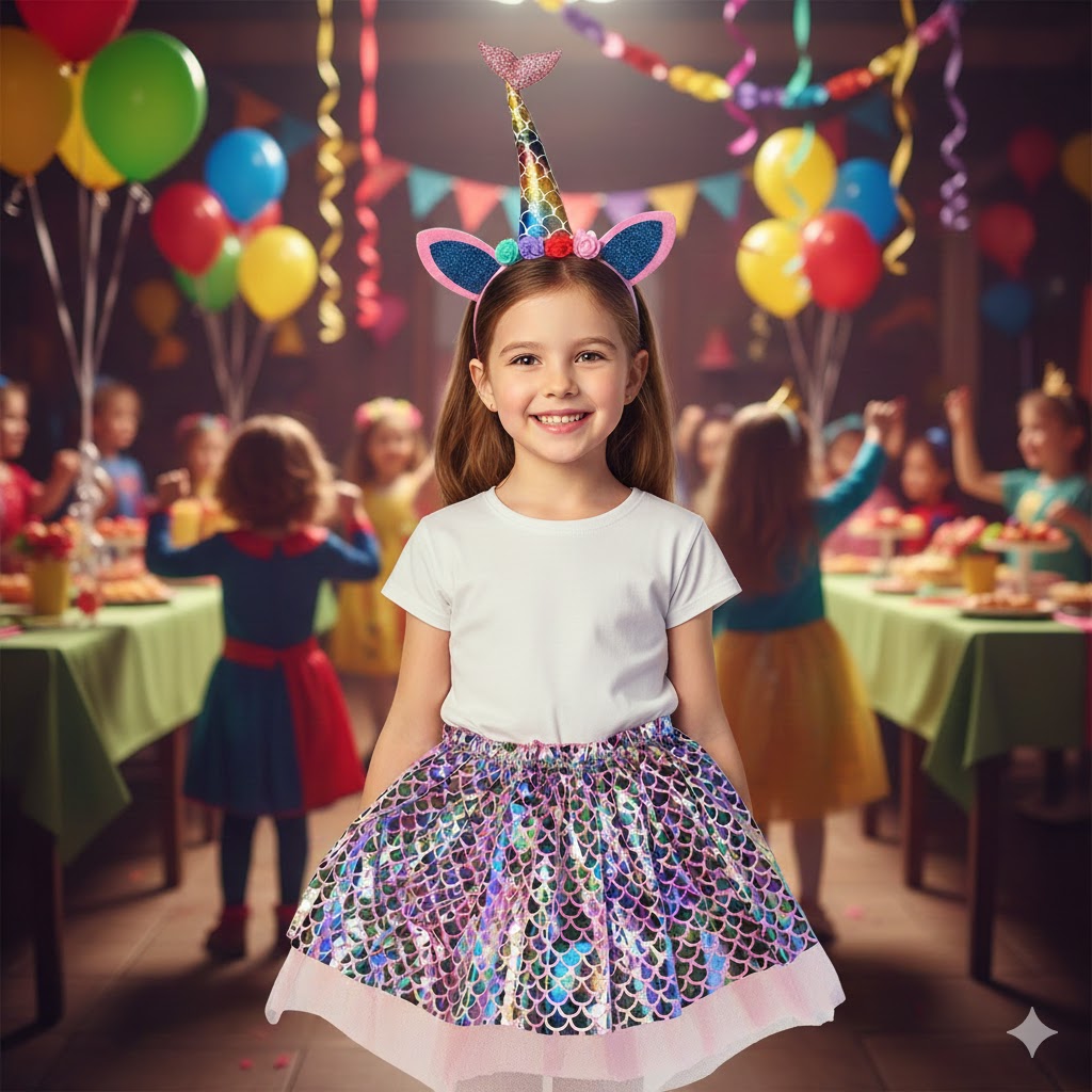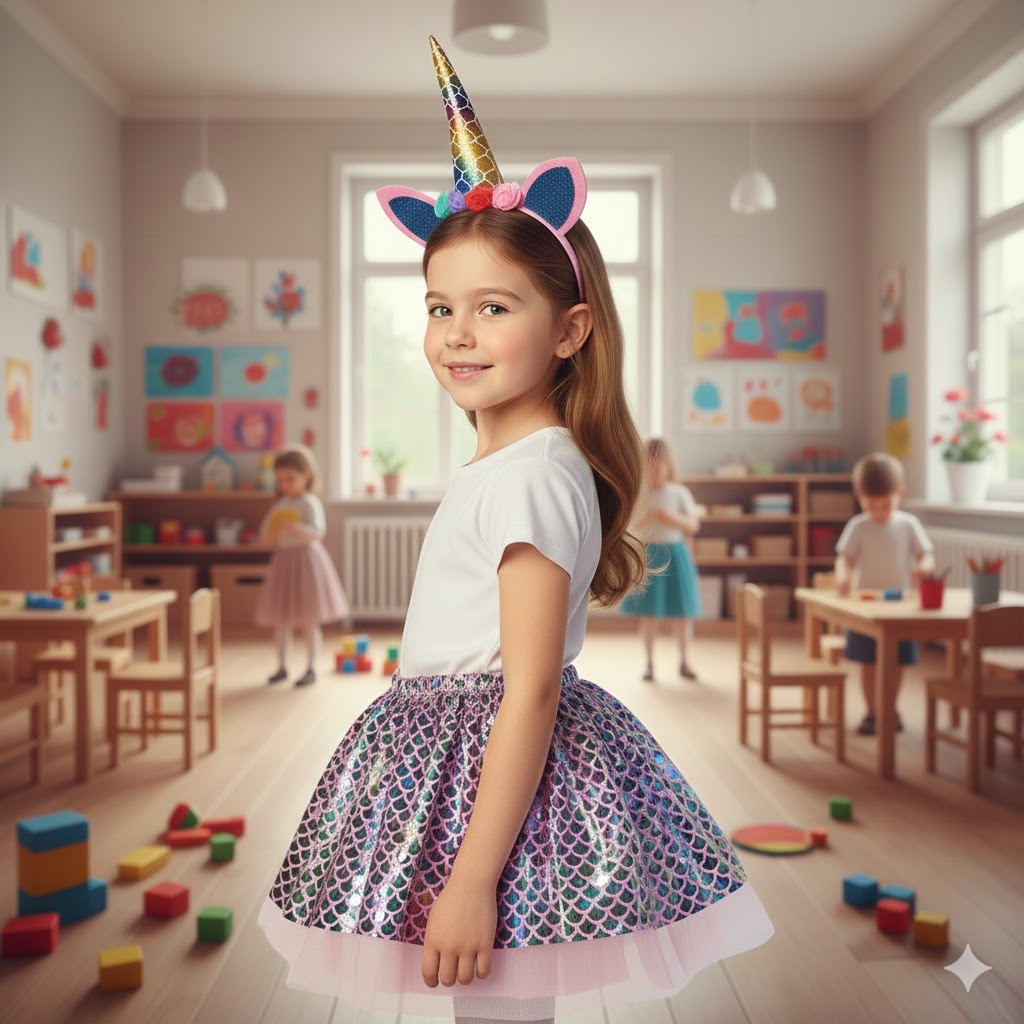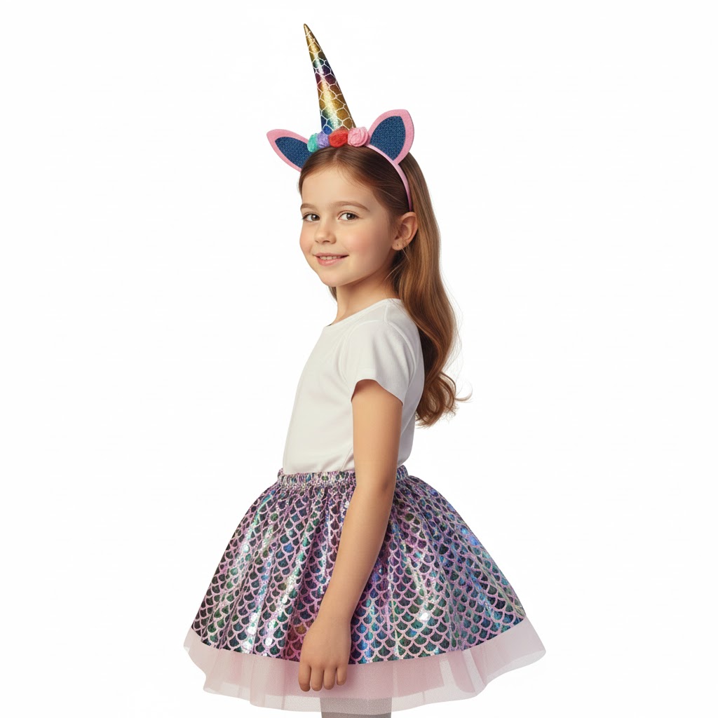 Varázsold kislányod napját igazi tündérmesévé! Ebben a különleges jelmezben nem kell választania a kedvencei közül: egyszerre lehet csillogó sellőlány és mágikus unikornis. Legyen szó farsangról, születésnapról vagy egy esős délutáni játékról, ez a szett garantáltan mosolyt csal az arcára.