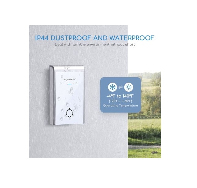 Szeretné, ha a lakás minden pontján hallaná, ha vendége érkezik? Ez a modern, hófehér Aigostar csengő szett két különálló vevőegységgel rendelkezik, így nagyobb házakba vagy többszintes épületekbe is ideális választás. A letisztult, minimalista design elegánsan illeszkedik bármilyen belső térbe.