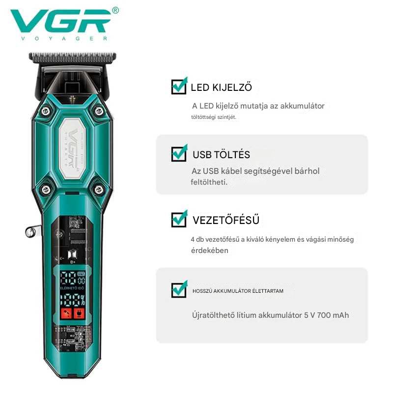 VGR V-600 Professzionális Hajvágó, Kerámia/Acél Pengék, LED Kijelző