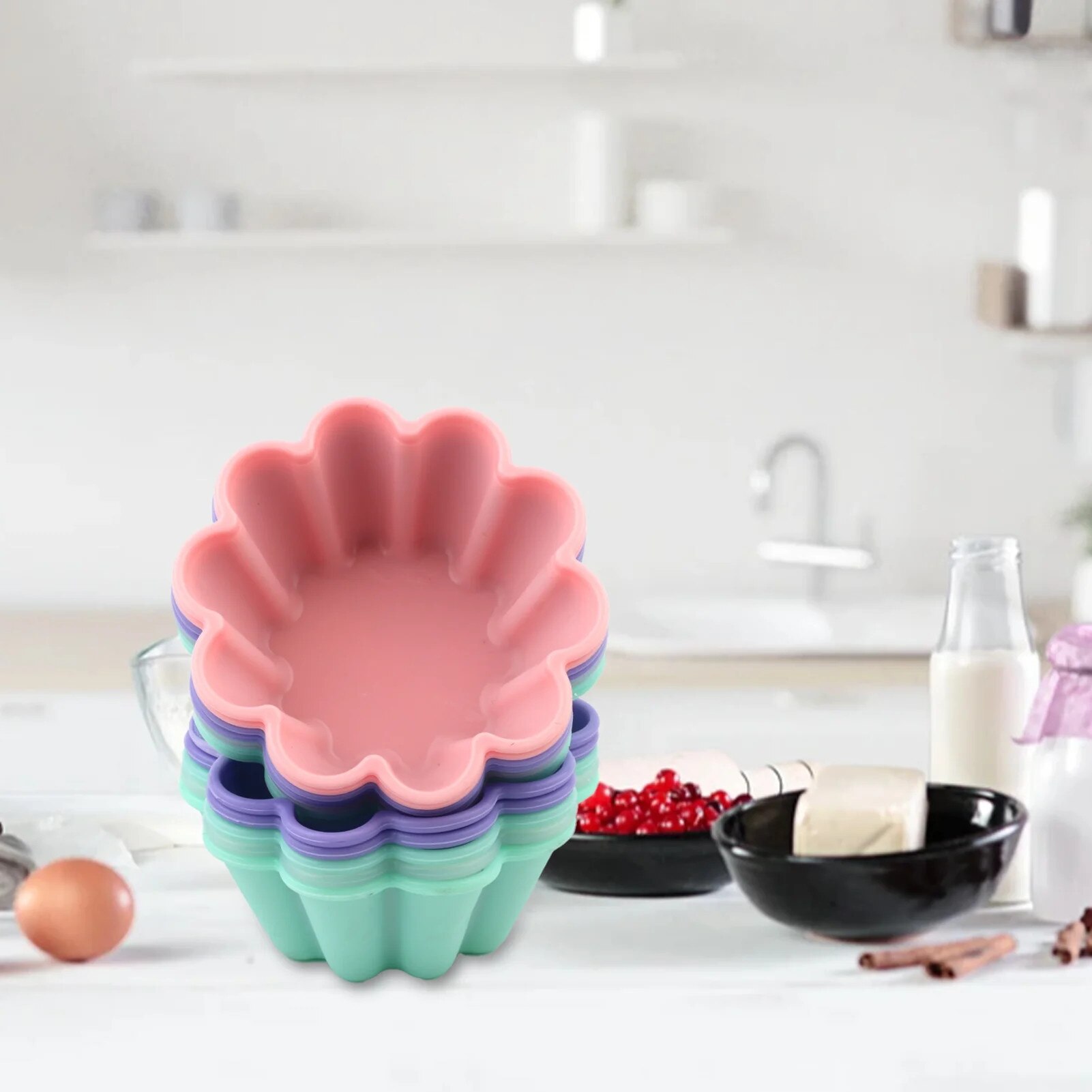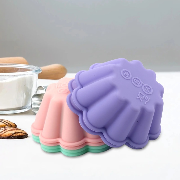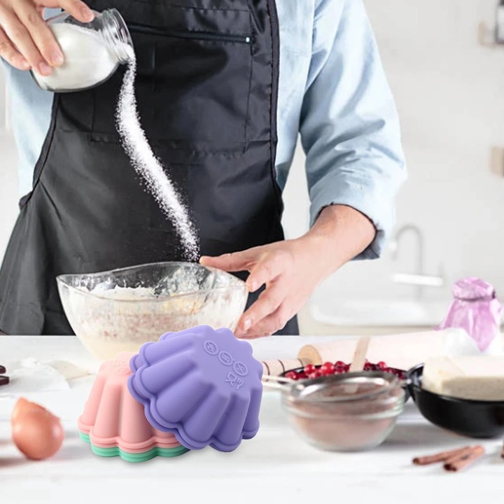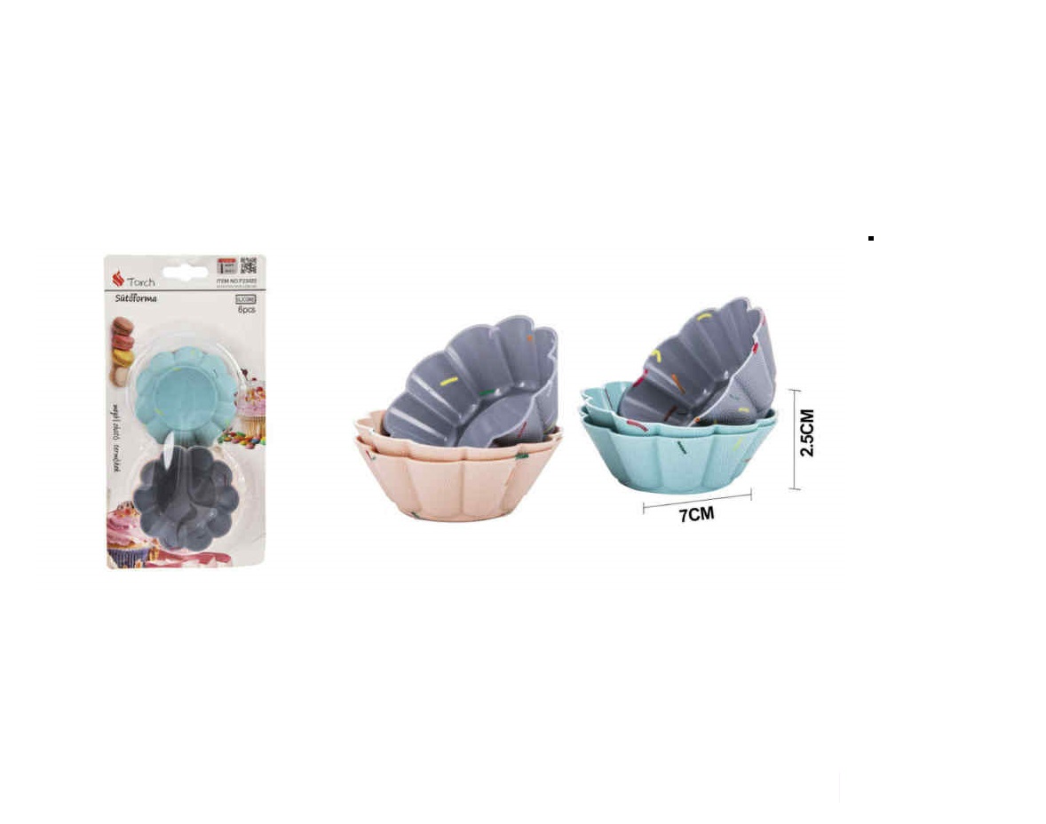 * 1 készlet (6 db) Virág alakú szilikon muffin forma.