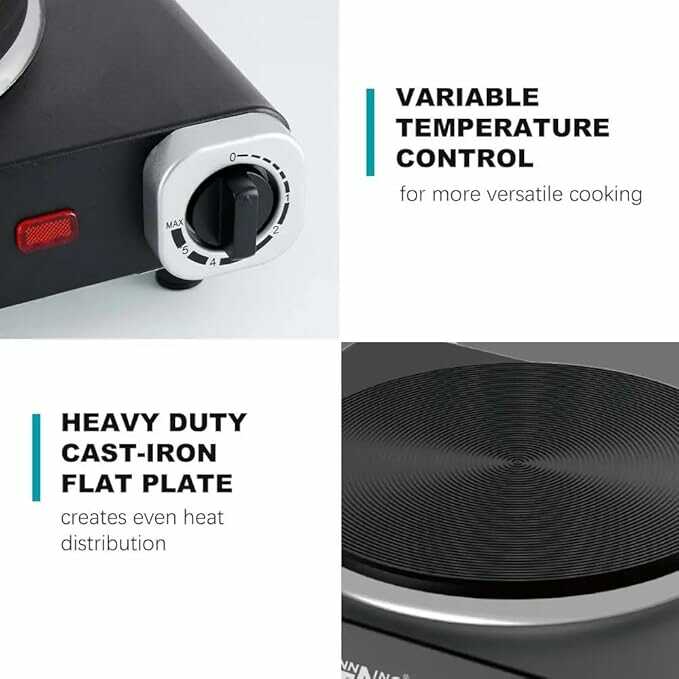 5 fokozatú mechanikus hőszabályzó: A precíz vezérlés lehetővé teszi, hogy az éppen készülő ételhez legmegfelelőbb hőmérsékletet válassza ki a lassú melegítéstől a gyors forralásig.