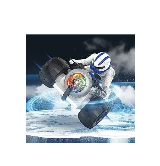 A kaszkadőr figura lenyűgöző trükköket és effektusokat tud produkálni. Amikor elindítod, a zene és a fények bekapcsolnak, majd a figura elkezdi a motoros mutatványokat. Bizonyos távolság után a háromkerekű motor megáll és elkezdi a 360 fokos forgását.